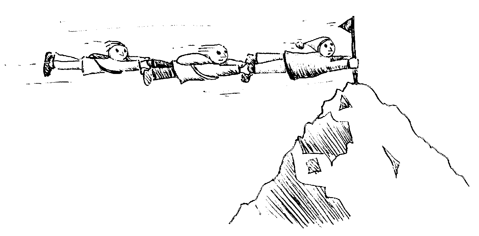 And there we were at the top! People appeared from everywhere on the summit plateau. Some of us reminisced about being lost up there in mist, and the Easter Lorna had nearly brought on mass hypothermia by insisting on a group photo while we were huddled in the inadequate wind-shelter. We could see the distinctive square top of Ingleborough in Yorkshire, over 40 miles away. Away to the north snow on the tops of the Galloway hills of southern Scotland showed glimpses of white. The western horizon was dotted with the snow-covered peaks - Scafell Pike, Great Gable, Bow Fell. The white snow-cap of Cross Fell stood out on the Pennines, the backbone of Britain stretching across the eastern horizon. Below us, Grisedale Tarn was dark grey, and rippled by the wind from the north. The panorama was so grand took loads of pictures. Green-fielded valleys, grey cliffs, brown-brackened hillsides, glistening lakes and sea, blue sky and threatening clouds, sheets of distant snow-showers, snow-capped peaks, tiny villages... it was all there. Reluctantly we turned to go. It was freezing standing in the wind and we shrugged and stamped as we set off down again. Pulling uphill to Dove Crag and Hart Crag restored the circulation. So it snowed again. The wind increased and we were pelted with pellets. By the time it blew over we’d turned the corner and thankfully had the wind at our backs from here on. Ian muttered "English climate! The only place you can get sunburn in a whiteout!" The snow was heaped under a drystone wall where it had drifted. Trudi offered little Ian her rear-end for snowball target practise - an offer gleefully accepted. As usual, going down was the hardest part, on tired legs. Trudi produced a Woolies plastic bag and used it to sit on and slide downhill. Ian was surprised "Mum! She’s mental!". It became rather steep and a bit scrambly in places. The path was on the other side of the wall but we hadn’t seen a stile, so we all climbed over. And then we came to a cliff-edge. Well, nearly. You could clamber down but it was practically vertical for 20ft. It was safely negotiated by everyone, except the sensible ones who found their way onto the big track below. At five o’clock it was 14 tired and happy souls who piled into Rydal Hall Youth Centre for several cups of hot tea. Lorna TREVOR’S AMPHIBIOUS JOURNEY Driving up to the Lake District on a Good Friday morning can be demanding, even in good weather. But throw in a flood or two and things can get more than a little exciting, particularly when Trevor's driving! The A1 Northbound was closed, and as might be expected, traffic ground to a halt. But we didn't, instead making a diversion via a village called Kimbolton. Before we got there though, we passed a sign saying that the road ahead was closed. Since everyone else was driving passed it, so did we. However, less than half a mile further on, we were forced to stop by a queue of traffic. Some gave up and turned around, but two lorries, with a better view ahead than most, pulled out and steam ed ahead. If they think it's OK thought Trevor, then I'll go too. We got some strange looks from people at the head of the queue, but on we went - for another 100 metres. We stopped at the water's edge. Before us was a lake where there should have been a road. He'll turn round now we thought, but oh no, we'd come this far and nothing was going to stop Trevor now! We watched the second of the lorries as it ploughed its way through, noting the depth. It couldn't have been more than a foot deep. As it came out the other side, we moved ahead at a sedate pace and made it through to the other side without incident. The feeling of relief on our safe arrival at the other side was to be instantly shattered. It wasn't the other side at all! Around the corner there was more, a lot more... This time the water looked deeper. Another lorry had pulled up behind us. We were well and truly committed and the only option was to go forwards. Being able to feel the water gurgling underneath the car was one thing, watching the water trickle in through the door seals was another. Karen's first thought was for her lunch, that was soon scooped out of harms way. As the waters rose, inside and out, the car was beginning to struggle to force its way through and thoughts were focused on the deterio rating note of the engine.. Ahead of us we could see a fast flowing river crossing the road, the bridge submerged. Trevor coaxed a few more rpm from the engine, while Phillip emptied a small plastic bin for Gareth to begin bailing. As we passed through the river, Trevor had to fight the current and Karen apprehensively watched the water rise outside until it was just below the door window. Again the note of the engine dropped, and we eyed the cold, muddy water outside. Now was not a good time to stop! None of us wanted to g et out right here and push, but it was only for a moment, and there ahead was dry land.