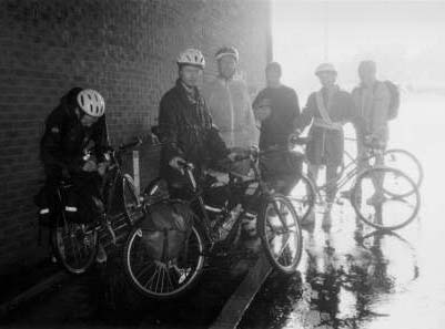 After inspecting our humble accommodation at the YHA, Waldy and Paul set off, direction Sible Hedingham, to find their fourteenth century B & B. Lorna had now arrived, having left Chelmsford at 3pm. Whilst waiting for Waldy and Paul to join us for our evening meal in the Bell at 7.30pm (Dave P. claimed to have seen them still cycling round Castle Hedingham 10 minutes earlier searching for their accommodation!), we were horrified to see a party of 50 German school kids arrive at the YH! After an excellent evening meal and pleasant banter with the barman, locals and visiting 'birdman' (person into Falconry), we retired with thoughts of 'the weather can only get better tomorrow!' (NOT!). After such an exhausting cycle ride, the last thing we needed was a group of noisy German school kids playing up, and guess what!?…..anyway thanks to Lynn's ('Der Fuhrer') linguistic skills the children (and their teacher!) were soon quiet. Sunday commenced with a delicious cooked breakfast (it seems that it is customary for the men to prepare breakfast, can't be bad). After a prolonged tour of the castle, due to heavy rain, we departed Castle Hedingham at noon. Unfortunately, the stretch between Castle Hedingham and Braintree was a bit of a blur, especially for those wearing glasses! This weekend was rapidly becoming a watersports weekend with wetsuits seeming like more appropriate gear! Arriving at the Boars Head in Braintree, those of us that could, changed into any dry remaining clothes. Unfortunately today they were not serving food as they were planning a barbecue later that afternoon (I'm not sure who had the last laugh!). So we headed for the nearest Joe's Café for burger butties. Despite the weather seeming to clear whilst we had lunch, the moment we decided to set off, for the appropriately named village of Rayne, the skies darkened and the thunder rolled! With no indication of it clearing, we decided we had no alternative but to set off for some white water cycling down Braintree's rapids (drain covers were literally being lifted by the force of the water and we were cycling through at least 2 inches of water in places!). After sheltering under a bridge, and with only about an hour to go to Chelmsford, we were suddenly blessed with glorious sunshine! So this story had a happy ending, as Paul and Lynn cycled off into the sunset, hand in hand,... Seriously though, as newcomers to Chelmsford YHA, I feel I can say that Paul and myself were well and truly baptised! Carol