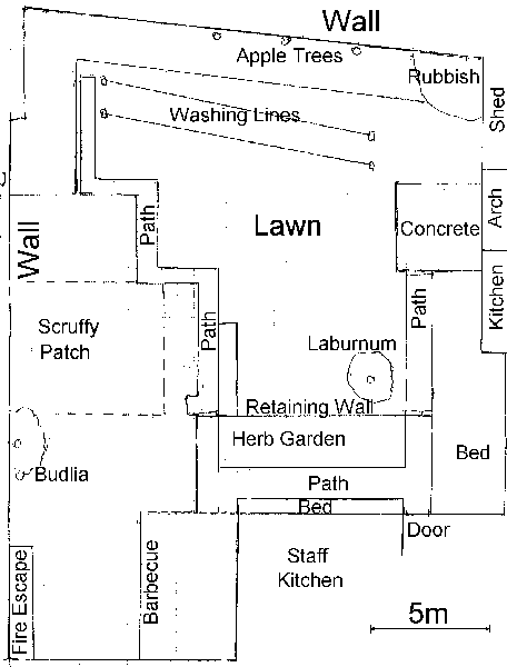 measures and the hard work really began! Our first task was to measure the garden and to map out existing features - this is not as easy as it sounds! Luckily we were joined by Peter and Edgar from Cambridge YHA local group, which made the task a lot easier.