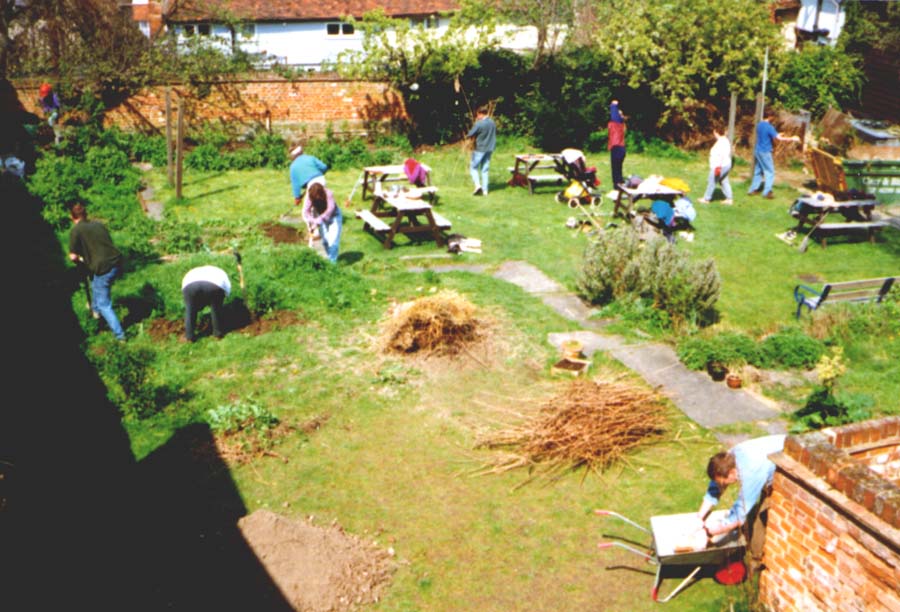 The Credits: Our thanks go to Suzanne, the hostel manager; Peter and Edgar of Cambridge YHA Local Group; Jim (who organised us), Darren (chief horticulturist), Andrew, Dave P, Dave J, Trudi, Chris H, Chris S, Janet, Steve, Caroline, Ann, Lorna and Petra of Chelmsford YHA Local Group; and Elvis, the hostel rabbit, for assisting with the digging.