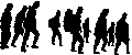 struggling to carry enormous rucksacks, containing everything bar the kitchen