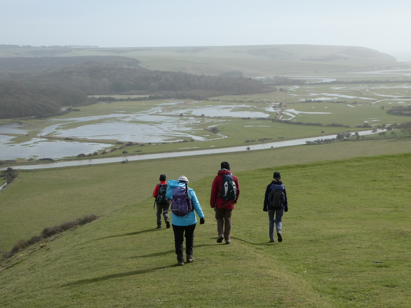 A Brisk South-Westerly If our February trip to Kent was marked by snow, then our March trip to the South Downs was characterised by wind. Our Saturday walk took us up high over the Downs, walking from the hostel at Southease over to Cuckmere Haven and then round along the coast to Seaford. On the stiff climb up from the hostel we were passed by a runner coming down: “It’s a bit wild up there!” he gasped. He was right. The wind got stronger the closer we got to the top, but luckily it was coming from behind us. The wind assistance was very welcome, but it didn’t stop our eyes streaming and our ears ringing. There’s not much shelter on top of the South Downs, but we did find a small clump of wind-blown gorse for a bit of respite. By this time our kidneys had been busy processing our morning coffee: bladders were filling up but finding a safe place for relief was going to be tough. Andrew was the first to break. An energetic rugby tackle after his hat started cartwheeling across the hill, proved too much for him and the gorse bush appeared just in the nick of time. The annoying thing about permissive paths is that they don’t appear on the map, so how do you plan them into a walk? There was a stretch of National Trust access land between us and a viewpoint over the Cuckmere valley and it seemed likely there would be a path through, but where? Should we risk a walk through the access land only to find the way out blocked? Or take the longer route using public rights of way? We plumped for the PROW option, which meant a walk down and then back up the hill to the viewpoint via a busy, pavement-less road. We got to the top only to see the stile connecting to the access land. If only we’d known! The viewpoint came with trees, bushes, a lovely bench, but curiously not much of a view. Given the windy conditions shelter proved more important than a view, so we stopped for a spot of lunch. The viewpoint was surprisingly busy, which was fine for lunch but less convenient for further comfort breaks. The pub might still be a couple of miles off, but we could hear it calling us. A stiff walk down into the valley took us past a chalk white horse and alongside the river. We passed twitchers getting excited by some lesser spotted ebony egret, but it wasn’t enough to lure us away from the promise of a pint of beer and a flushing toilet. Post-pub we were up on the white cliffs and heading into the wind. It was a tough last couple of miles, but we were rewarded by cake and coffee in Steamworks whilst we waited for the train (rail replacement bus) back from Seaford. In spite of the wind, the weather was rather nice and we had blue skies much of the day. Sunday, however, was a different matter. If we had thought Saturday was windy, Sunday had us struggling to stand up. From the hostel in Southease, we walked up to the old village and the rather charming parish church. So far, so good, but then there was the teeniest little hill to climb before we could join the Ouse Valley Way into Lewes. It might have only been little, but we were being blown sideways, eyes streaming. We thought heading for lower ground would bring some respite, but the river valley was, if anything, a wind tunnel. It was head down into the gale the whole way to Lewes. With some relief we staggered into town and the welcoming arms of the first coffee shop we could find. After we’d scoffed down some cake and hot coffee, we felt sufficiently revived to do a quick walk round the town. The castle at the top of the hill was a fantastic vantage point, then we walked back through the medieval streets down to the train station for yet another rail replacement bus. We did rather well out of the rail replacement busses – not only was the service to Southease more frequent, but we were given (and given and given) ginger cookies as compensation. We don’t get that in Essex! Ali |