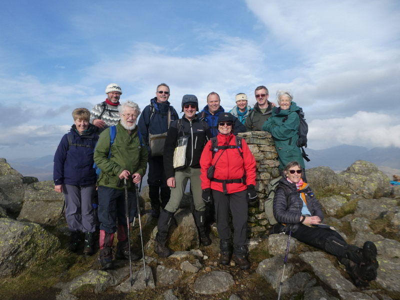 Autumn Spectacular A birthday is always a great occasion and what better place to celebrate it in than amidst the glorious landscape of the Lake District, the most scenic and inspiring of English counties. So earlier this month we headed north to our destination of Eskdale to celebrate Ali’s birthday and combine the festivities with some hiking. Our accommodation was Fisherground, a very large former farmhouse with a seemingly unlimited supply of bedrooms and beds and truly suitable for such a large gathering of well-wishers. By Saturday evening almost everyone had arrived from Essex, Cambridgeshire, Leicester and Sheffield. It was great to meet up in for a week of fun and hiking in such a lovely place. The farmhouse backs directly on to the slopes of the Eskdale hills and proved to be a great base for walks along the valley and up the high moors. We celebrated Ali’s birthday on Monday evening at a pub along the valley which served a varied choice of nourishment. The previous evening over dinner there had been a wide-ranging, highly academic and very intense discussion about the history and evolution of black pudding, with special emphasis on the crème de la crème product supplied by Mr Charles MacLeod of Stornoway. Following this I was determined to sample as many varieties of black pudding as possible and was very pleased to have it both for my hors d’oeuvres and with my main dish. If anybody reading this is keen to try I would certainly recommend a ‘Cumbrian Black Pudding Tower’: truly a dish to satisfy even the most discerning of black pudding connoisseurs. We walked every day following a variety of paths and routes. The rainfall before we arrived had been heavy over a period of days and so the streams and brooks were fast running and swollen. We mostly had reasonably dry weather, just one day forcing us to test heavily the resilience of our waterproofs. On occasions in the Lakes walking routes are full and there are usually other hikers winding their way. But our walks in Eskdale were largely solitary and we rarely saw other hikers. This was partly due to the time of year but more so I think because of the isolation of Eskdale. Lovely really as we spend so much of our lives in high-pressure jobs in busy environments, so it is such a welcome change to be far from the crowds. The week allowed me to fulfil three ambitions. Firstly to walk down to Hardknott Roman fort from the heights of Hardknott pass. The restored ruins are in a spectacular setting and the view of the fort must have awed travellers and merchants as they walked or rode by. For soldiers returning from patrols in the windy hills the fort coming into view must have been a welcome sight. I thought of raw recruits from Dalmatia, plucked from their homes along the warm Adriatic and marched across Europe behind their standard and stern centurions, up to the scoured fells and soaring height of Hardknott to start their tour of duty at the fort. An epic odyssey for lads away from their homes for the first time. I was delighted also to see the Roman baths at Ravenglass (second ambition) and to have my photo taken with Stan Laurel at Ulverston (third ambition). A superb week which has been my highlight of 2018. Thank you to everyone for making it so enjoyable. Thanks too to Christine for our stay at the delightful Furnace Cottage at Ulverston at the end of the week. John M Birthday Thanks! Thank you to everyone who helped make our November trip to Eskdale so memorable. Most of you will know that this was timed to coincide with my 50th birthday. Along with all the general eating and drinking, on the day itself we climbed Harter Fell. This is a hill of great sentimental value for me, as 28 years ago it was my first hill over 2000ft and the first of (very) many mountains I’ve climbed with Dave P. Looking back at old photos, both Lorna and George were there 28 years ago, others like Tae, Fergus, Gerry and Tom featured on ascents in 2001 and 2010. We had quite a crowd this year, no doubt laying down memories for decades to come! Ali |