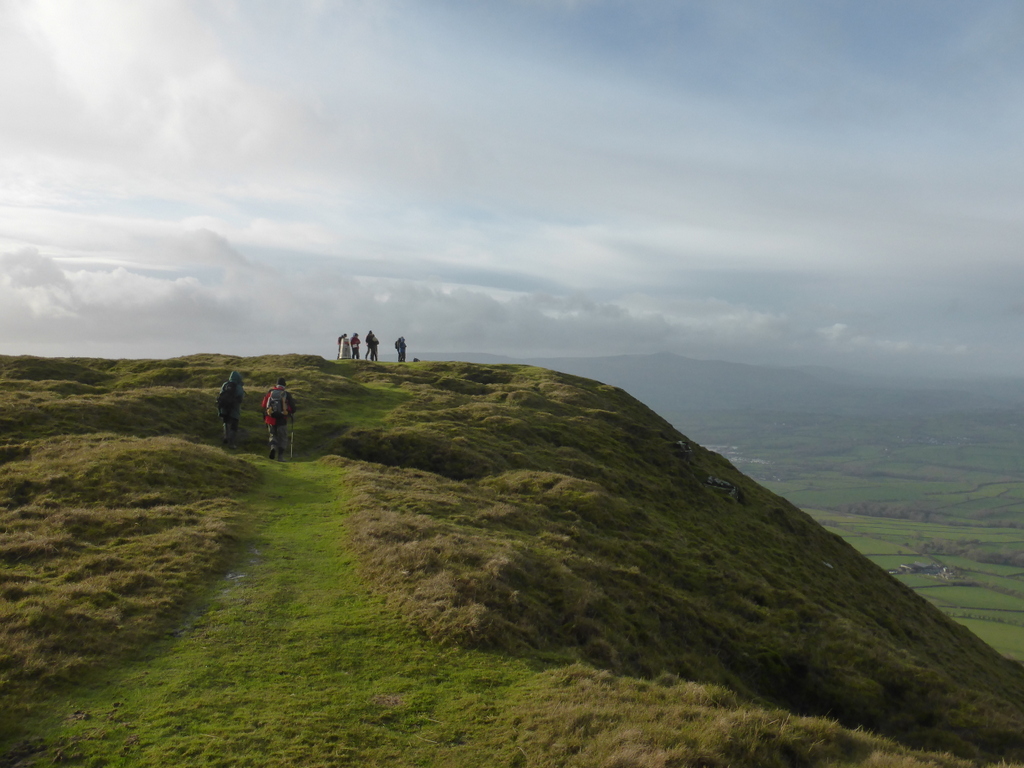 Wet, Wet, Wales I think the sticky mud of Essex has just about displaced the distinctive pink mud of the Black Mountains. Our New Year trip featured mud, a lot of mud. This makes it sound like the weather was awful, but it really wasn’t. Of the seven days we were away, only two were a complete write-off: the day we left and the day we decided to head for the mines. The Big Pit museum near Abergavenny is a fantastic visit. They have real mine workings you can don a hard hat to visit, lots of massive machinery and galleries of memorabilia to give you a taste of the lost mining communities of Wales. It also had a very nice café. Our first walk from the Cwmfforest centre took us up the Dragons Back. It started with Castel Dynas, a rather lovely Iron Age hill fort with some Norman stonework on top. The descent from this small hill seemed to be particularly slithery before we then picked up the steep climb to get onto the ridge. It was somewhere around this point that poor Sarah slipped and sprained her ankle. We didn’t notice for a little bit, not because we were heartless (well, maybe a bit heartless!) but with our heads down concentrating on the climb it was all too easy not to notice someone lagging behind. Luckily Sarah had Robin to look after her and they managed to catch up with us when we stopped for an extended breather on the first knobble of the dragons back. What it didn’t tell you in the guide book is that the Dragons Back is basically a string of false summits ruthlessly leading you on, only to dash your hopes when cresting only reveals yet another peak beyond. It was hard to be too disappointed, though, this was the best weather of the trip. We had blue skies with scudding clouds. What showers there were seemed to be falling in the neighbouring valleys, so what we got was streaks of golden sunlight illuminating the fields in vivid green. It was enough to take your mind off the steep climb, but possibly not a painful ankle. A small sub-set of our party turned back to return down the valley, whilst the remainder continued up to the head of the valley. Now, presumably at the dragon’s head, there was no shelter from the wind and, although the views were still stunning, you didn’t want to hang about. It was a tough call because although it was very cold, the weather was just getting better and better. Too quick and you would miss the best part of the day! The descent from the ridge took you down to the pony trekking path. There were a few steps, but mostly it was a rubbly path leading down to a sunken green lane and then on to the tarmac close to our bunkhouse. As we got close to the road we met a mountain biker on the way up – it was Robin! Having escorted Sarah safely back to a cup of tea and an elevated ankle, he was making the most of a beautiful evening. Mind you, he did need hosing down afterwards…. Ali
