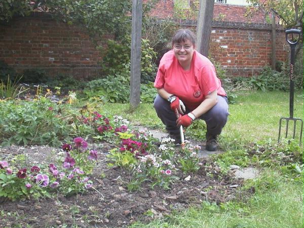 A bit like Snow White's dwarves, Dave and I lifted our tools and "hi-ho-ed" down the hill to Saffron Walden youth hostel. Today was the Heritage Open Day, and we had promised to do a bit of work in the garden whilst the public were shown round the historic building. Within a couple of minutes of our arrival in brilliant sunshine, Jim arrived and the sun disappeared behind a bank of grey cloud (I'm sure the two were not connected). We knuckled down to digging and weeding whilst Jim got his big loppers out to give the tress a much needed haircut. A little later John came to join us, followed by a surprise visit from Dave's parents, who after a tour of the house, got their trowels out and mucked in. Between the six of us we decimated the weeds and doubled the size of the compost heap by dint of sheer hard work. We were rewarded by a sense of satisfaction, lots of tea, and cakes left over from the official opening of YHA Wells the previous weekend.