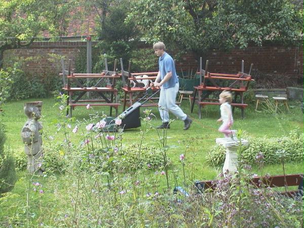Stung and bitten, dirty and aching, we sloped off to the pub for a pint or two we felt we'd really earned. We had a pretty successful evening at Saffron Walden hostel - thanks to everyone who came and helped. I was very pleased with the turn out - 11 of us and 4 from Harlow group. Mike the warden was pleased to have some help. We cleared a lot of weeds, mowed the lawn and planted some flowers. Quite good for an evening. (It was pitch dark by the time we finished though!). And amazingly it didn't rain on us; there was a downpour at 3pm and thunder at 10pm but really quite pleasant while we were in the garden. The herb garden area is very overgrown and we didn't have time for that, so we are going back on Sunday 15th September to do some more. Please come and help if you can! Dave P.