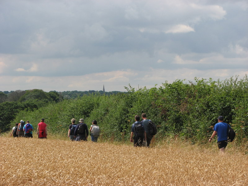 August Cycle Ride It was a lucky 7 met in Thaxted at the start of our 20 mile cycle ride. The first stop was the picturesque village of Finchingfield and its equally picturesque tea rooms. It was teas all round and Mike partook of fullest full English I’ve ever seen – fuel for the journey ahead. By this time we’d not gone very far, we were loaded with excess calories, and it was already midday. Pressing on, we sped through the villages of North Essex (hilly!) and nudged up into Cambridgeshire. Lunch was at Castle Camps, dining on the green next door to the pub. As elevensies were at twelve, it was no surprise that we weren’t ready for lunch until three. Luckily for Carol (who’d forgotten her lunch) the pub was still serving and presented a succulent-looking beef sandwich, complete with place setting and knife & fork. Never has a picnic looked so posh. The last leg of the journey included yet another opportunity for nosh as we passed through the village of Ashdon. Ashdon boasts a very fine local museum, run by volunteers and a team of tea-cosy knitting ladies with a fine line in home baking. Some of our cyclists also rounded off the day with a pub meal in Thaxted. I strongly suspect that we ate more calories than we burnt off, but at some point the route stretched from the advertised 20 miles to nearly 40. A weekend away... in Chelmsford Often walking near Chelmsford, we’ve come across waymarks for the Chelmsford Centenary Circle, and I’ve been curious to know where it went. So when Dave and Helen offered to lead an expedition around the Circle, we had a chance to find out. The 22-mile Centenary Circle was set up in 1988 to mark 100 years of the Borough of Chelmsford. Starting in Springfield, the first part of the route along White Hart Lane and past Sainsbury’s didn’t seem very exiting, but we soon dived off down a footpath I’d never noticed before, passed under the A12 and found ourselves on the familiar path beside the River Chelmer. Via Sandford Mill, we came to Sandon for lunch on the village green and a pint at The Crown. After passing through Great Baddow, we were off across the fields for the most scenic part of the day to Galleywood. We broke the route for curry, beer and a night’s sleep. Carrying on next day, from Galleywood Common, we crossed the Wid Valley and into Hylands Park (ice cream stop), and then on to Writtle for lunch. Next, heading north, crossing the river Can, skirting around Melbourne to Broomfield (pub stop), across the Chelmer valley, through the fields around New Hall to Beaulieu Park and back to Dave & Helen’s for more tea and cakes! Altogether, a thoroughly enjoyable weekend, and fascinating to connect such familiar places with unfamiliar footpaths through some very pleasant countryside. Dave P Dining at The Duck Thank you Cress for organising a lovely evening with ten of us for dinner at the Duck in Newney Green. It was lovely to have Doug back with us after his accident a few weeks ago, though I’m not sure the other diners would agree. The graphic description of his face-off reconstructive surgery sounded more like the plot from a Tarantino movie than suitable dinner conversation. More raspberry coulis with your sundae? Ali |
