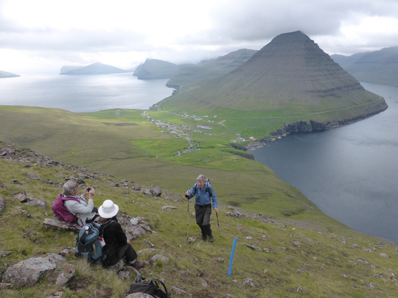 Wild Faroes I found this holiday to be immensely enjoyable. Visiting these storm-lashed islands on the edge of Ocean was a novel experience for me. I had done the Explore holiday to Lapland in 2002, where we toured the Lofoten Islands, Tromsø and North Sweden before crossing to the Sami capital at Ravianemi in Finland. The coast of Norway was impressive, with steep cliffs. But it did not compare to the immense, brooding cliffs of the Faroes, more jagged and sheer than their counterparts opposite the Lofoten Islands. The Faroes appear pristine in their rugged bleakness, with a beauty accruing from the way they have been purged and shaped by the wildness of the seas surrounding them. Crossing to Mykines on the first day was a great primer into the beauty and concurrent unpredictability of the islands. Scrambling from the ferry onto the quay at Mykines was something to be done energetically. But it did not compare to the sight of the rollers and white horses surging into the inlet, viewed from the path to the village above. Watching this gave me great respect for the fishermen who had lived on the islands, and who were frequently compelled by necessity to launch their boats into the fiercest rollers in their quest for fish to feed their folk. A Faroese gentleman on the path above the quay explained to me that in bygone days an observer watched from the path for the smallest wave and then shouted to the fishermen below to launch their boat. Missing this wave could be fatal. The hardness of life on the islands in earlier times can be readily appreciated from snippets like this. The old photos from the 19th Century in Torshavn museum of fisher wives huddling by the quay at Torshavn day after day in all weathers, clad in hand-me-downs and homespun woollens, gutting the catch landed by the fishing boats, brought home the physical harshness and precariousness of this life. On a hike across Nólsoy we passed the ruins of a solitary farmhouse at Kondolur, abandoned some three centuries ago when the driving sea had encroached too much on the farm’s grazing land and life at the farm had crossed the divide from difficult to unsustainable. Times are now fortunately different for the locals, and life for most seems to be at a Scandinavian level of comfort, if not always of affluence. The villages today are always picturesque and their modern, brightly painted roofs contrast with the brooding heavy greenness of the mountains and hillsides surrounding them. A local lad who we met above Gjógv on Eysturoy when walking to see a fulmar nesting colony had just returned from a year in Argentina. He said that spending time overseas had made him appreciate the beauty, tranquillity and settled polity of his home, the Faroes. Later in our trip a boat trip from Torshavn took us past the soaring sides of the lonely Lítla Dímun island to Suðuroy, most southerly of the archipelago. Suðuroy seemed incredibly isolated, a speck of matter on its own in the Atlantic. You had the feeling when there of an outpost in the middle of the ocean. Isolation is integral to the Faroes and has shaped their history and character today. The islands were a wonderful destination for our club holiday and I believe that its memories will remain vivid for all who went. John M