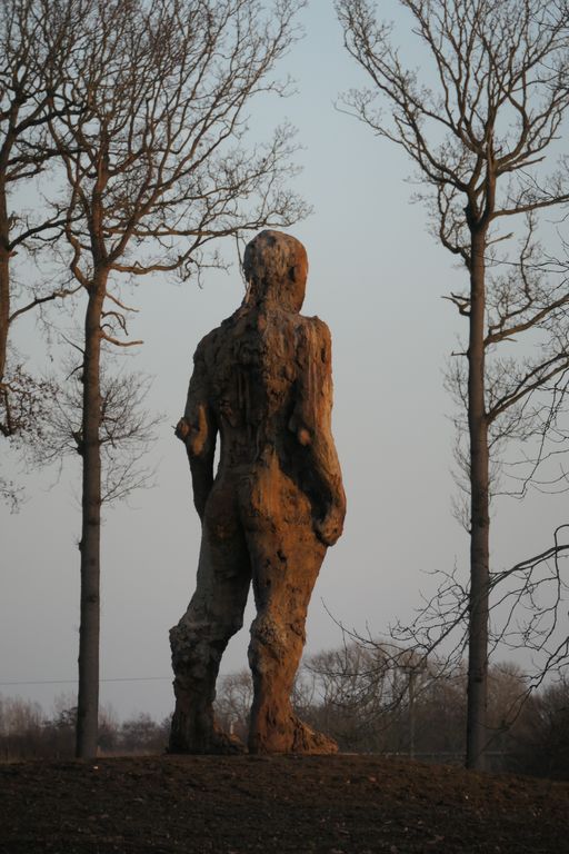 Leaving the Blyth valley bagged a brief pub stop and warm up at Bramfield before heading off towards the Yox Valley. Yoxford itself was a bit of a disappointment, in that the pub seemed to be long shut, but it did have a thriving corner shop in what looked like a grand gatehouse. The gatehouse for what? Another half mile or so had the answer when we came across views of the magnificent Cockfield Hall. Largely dating from the early 17th century, the hall is a huge red brick building with a cupola and twiddly chimneys. It is set in a large parkland, part of which had been recently re-landscaped. As we approached the road we could see the golden setting sun glinting off the colossal Yoxman. Erected in 2021, the Yoxman is a 26 foot bronze sculpture of a naked man moulded to resemble twisting branches and vines. It’s very striking and hard to miss if you happen to be driving down that part of the A12.