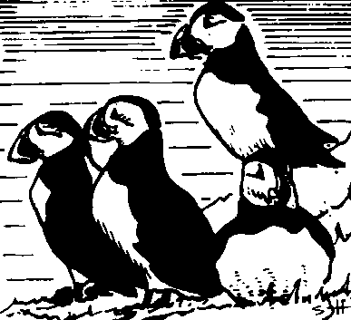 Pembrokeshire - Sea, Sand, Cliffs and Puffins! After the usual late-night confusion trying to find the hostel ("We came this way last time - but we were lost then as well") we all arrived at Llwynypia (pronounced, apparently, "cloon-a-pier") in the Rhondda valley. A useful hostel for a Friday night stop-over, but sadly closing next year. Amazed to find the sun shining in the morning, we headed for Swansea and walked Cefn Bryn, which is the ridge which straddles the centre of the Gower peninsula, with a detour to Arthur's Stone - prehistoric burial chamber and viewpoint. A couple of hours more driving towards the setting sun, the M4 giving way to A roads, B roads, narrow lanes, and a rough farm track, we finally arrived at Marloes Sands hostel, just about as far west as you can go without getting you feet wet. Marloes Sands Youth Hostel was even better than I remembered it. An isolated cluster of old farm buildings on the cliff top. Boys in the cow shed, girls in the hen house, warden in the hayloft and the kitchen in the piggery with views out to sea.