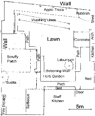measures and the hard work really began! Our first task was to measure the garden and to map out existing features - this is not as easy as it sounds! Luckily we were joined by Peter and Edgar from Cambridge YHA local group, which made the task a lot easier.