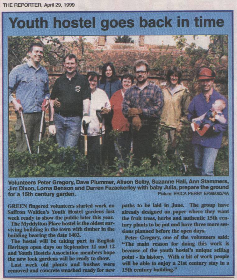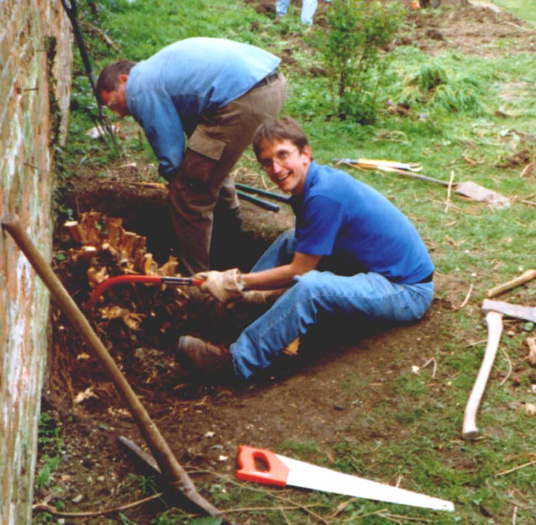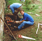 The Credits: Our thanks go to Suzanne, the hostel manager; Peter and Edgar of Cambridge YHA Local Group; Jim (who organised us), Darren (chief horticulturist), Andrew, Dave P, Dave J, Trudi, Chris H, Chris S, Janet, Steve, Caroline, Ann, Lorna and Petra of Chelmsford YHA Local Group; and Elvis, the hostel rabbit, for assisting with the digging.