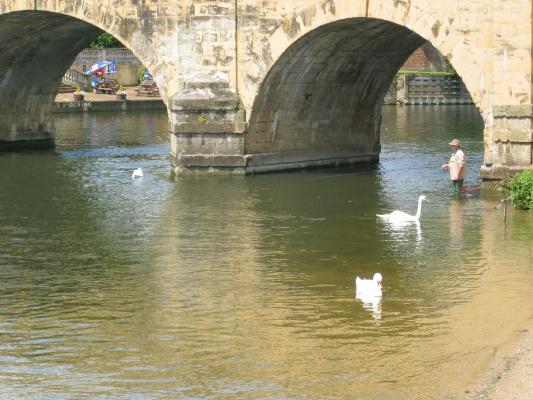 On Saturday morning some of Ian's friends from the Exeter group arrived and we set off en masse for a walk along the banks of the Thames. This was very pleasant and a world away from the Thames I used to stroll along during my lunch hour when I worked near the Tower. We walked past banks of reeds and braces of ducks, and beneath a splendid 19th-Century twin railway bridge carrying the line from Reading to Oxford. This bridge may be one of Brunel's masterpieces. We then arrived in Wallingford and availed ourselves of refreshments.