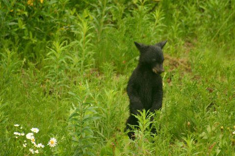 Badby hostel is up for sale and due to close in August, so this was our last chance to stay in this 17th Century thatched cottage, the only hostel in Northamptonshire. On Saturday a pleasant walk in the rolling countryside of the Northamptonshire uplands followed the Knightly Way through Badby Woods and Fawsley Park, through attractive villages with orange-coloured ironstone cottages, and returned to Badby on the Nene Valley Way, for a barbecue in the hostel garden. Sunday's visit to Stoke Bruene beside the Grand Union Canal had something for everyone: the Canal Museum in a restored corn mill, watching narrowboats negotiate the flight of locks, a stroll along the towpath, a boat trip into Blisworth Tunnel, pub with morris dancers, and a tea shop with the most splendid strawberry cream teas. Wendens Ambo in the Wet A rather grey Sunday saw 17 of us gather in the Common car park in Saffron Walden under ominous skies. True to form, we hadn't gone more than a hundred paces when it started to spit with rain. Never the less we soldiered on, out of the town and through the fields and meadows surrounding Audley End house. By the time we came round to the front of the house it was raining quite steadily and the last of us gave in and pulled on our waterproofs. The rain grew heavier as we wound through St Marks College and the fields round the back of Wendens Ambo, and it was with some relief that we arrived at the pub, with the opportunity to dry off a little and try some of their real ales. Needless to say it immediately stopped raining, only to start again as we pulled our coats on for the return journey. The second half of the walk was, if anything, wetter than the first, but good fortune was on our side as we were saved from tea deprivation by the worthy ladies of the United Reformed Church Hall. Having at least doubled their customer numbers for the afternoon, the ladies were very pleased to see us and kept us well supplied with tea and cakes. Thus fortified, we managed to struggle the last quarter mile back to the car park, damp but satisfied with a walk well done. Cycling in the Wet Equally inclement conditions greeted the 5 hardy cyclists who turned up on Wednesday for the ride to the Viper. Perhaps we'll do it again in November - the weather might be better. CANADA: PEAKS, LAKES AND BEARS(and BIG BREAKFASTS)Aka Planes Trains and Automobiles