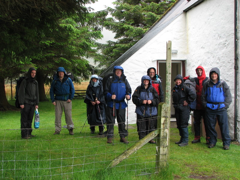 BETWEEN HEAVEN AND HELL Knoydart is a wild and remote peninsula on Scotland's North-west coast, bounded by Loch Hourn in the North and Loch Nevis in the south. There are two ways in, either a 20 mile slog on foot, or a boat ride, commonly by ferry, 45 minutes out of Mallaig, but in the case of our dozen CYHA adventurers, a privately hired RIB, which took a little over 15 minutes to convey us from the somewhat austere port of Mallaig to Inverie, the main settlement of Knoydart, in a sheltered bay on the peninsula's southern side. The brevity of the journey in our fast little boat did not detract from the feeling of remoteness, akin to approaching an island, at first sight of the little string of low houses sighted through the thin rain. The feeling did not diminish after disembarking at the wooden jetty which facilitated the tiny village's access to and from the outside world, nor as we proceeded along the shore, under steel-grey skies, through the village towards the bunkhouse that was to be our base for the next few days. This turned out to be more comfortable than I at least, had anticipated, with a wood-burning stove in the cosy sitting/drying room, a kitchen with all the usual appliances (which Trudi & her helpers were to utilise to good effect over the next few days), hot showers, and clean and comfortable dormitories. In fact the main hardship was for those too old and slow to secure a single bed or lower bunk before quicker and fitter younger members. The weather brightened a little that afternoon, as our small party ventured out past clusters of vividly-coloured invasive rhododendrons, such a threat to the local flora, and proceeded along the coast, beneath cloud covered peaks and into its boggy hinterland. Away from the chatter of the group, the peninsula's stillness could clearly be felt, broken only the soft sound of lapping waves. Activities for the following day, which began overcast and wet, varied according to inclination. The more active ventured up the rain-shrouded conical peak of Sgurr Coire Choinnichean behind Inverie, coming close to the summit, mistakenly thinking they had reached it in mist and rain which reduced visibility to a few metres. For those less physically focussed, there was a guided tour through the woodlands above Inverie by one of Knoydart's resident Rangers, providing insight into the restoration and management of the area in a sustainable manner. The replacement of the ubiquitous sitka spruce by native trees was a major feature of this process, and the green shoots of the latter could clearly be discerned within the barren acres of cleared forest. Throughout the day, relaxation and refuge from inclement weather was to be found within the welcoming walls of the Old Forge, officially mainland Britain's remotest pub, providing fresh seafood, good ale and a broad social mix of visitors and residents. Almost all of the latter appeared to newcomers, and all revelled in their adoption of the "good life". As the weather improved, walks in various directions became more attractive. One expedition, to the western end of the bay and beyond, resulted in quantities of delicious, fresh mussels for that evening's supper. On Tuesday morning we set off in the RIB again, travelling far round the coast to the even more remote location of Barisdale, on the northern side of the peninsula. This voyage was considerably longer than our trip to Inverie from Mallaig, and our destination even wilder, making the few scattered houses of Inverie appear almost a metropolis in comparison. Here was no jetty, only a precarious rocky outcrop, where tranquil waters allowed us to gingerly unload ourselves and our provisions. The departure of the boat with the slightly incredulous good wishes of its crew, provoked a curious, if temporary, feeling of abandonment and isolation. We really were on our own now! With full packs and 2 days supplies we made our way a mile or so over rough tracks to the lonely white house by the Barisdale valley, which was to be our home for the next two days. Apart from the top bunks lacking ladders to access them, resulting in those not wishing to risk life and limb who but late in claiming their bunks, having to sleep on the floor, the accommodation was again more comfortable than I, for one, had expected. Coal was available for a stove which provided hot water for cooking and washing, and a generator provided electricity for light. Gerry provided tasty and nourishing food in the evenings at Barisdale, giving Trudi a welcome break. Dave P continued to daily demonstrate his mastery of the art of porridge making, begun in Inverie, providing us with rib-sticking fuel for each day's activities. These varied with the vagaries of the weather. Tuesday afternoon was bright enough to get us all out, on a mixture of high and low level walks. Wednesday began wet and miserable, but did not dissuade the more intrepid from an assault an assault on Luinne Bheinn, an acclaimed "Munro". Several of us hung around the house until the weather cleared in the afternoon, and then took walks in various directions. I took a solitary stroll along Barisdale valley, enjoying its sheer remoteness and wild beauty. After a couple of hours, I spread my waterproof overtrousers on the ground by the river, and sat for a while soaking up the peace and solitude of the valley in the mellow evening sunshine. Wandering back, some time later, I became aware that I was not entirely alone when I rounded a bend to encounter a trio of deer, just above the track. They stared at me curiously for a couple of minutes before racing away to more secure grazing further up the hillside. It was only when I was back at the White house, the welcoming aroma of cooking supper in my nostrils, that I remembered the overtrousers, lying on the bank of the river, high up the valley. This was a "senior moment" which I could have done without, in view of the dismal weather prospect. Wet legs were unlikely to enhance the 10