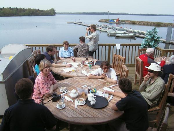 Bird watching by Bike Another sunny day, and James led a pleasant cycle ride around Hanningfield Reservoir, including lunch on the veranda of the Waters Edge restaurant and plenty of bird-spotting opportunities around the lake, including a woodpecker which posed for us outside the window of the visitors centre.