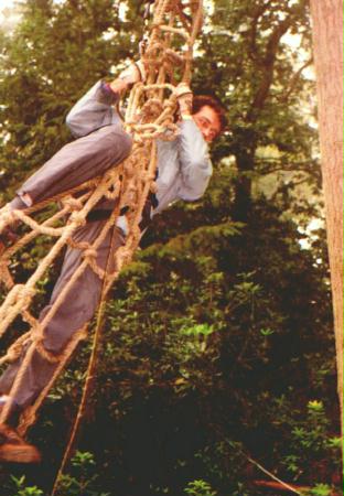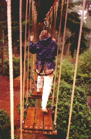 Another month passed full of fun-packed activities. Whilst Dave and I were sweating it out in Death Valley (see pictures), some 15 of you were swinging about on ropes in Suffolk (see Marion's report below). On our return we joined in with the Medieval frolics at St Briavel's Castle (see below for details). We've had a wonderful crop of articles this month, including Ian's poem in praise of Woody's Top (below), and I've had a tough job editing to fit them in. Anyone anxious to read about Jim cycling through Holland and Belgium will have to wait until next month, but it will be worth it! Ali Monkey Business