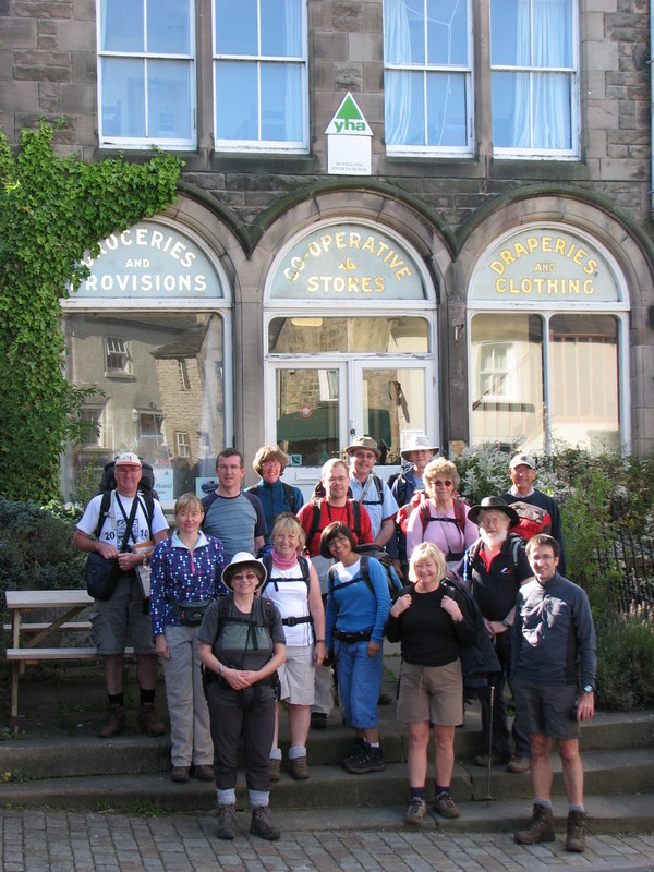Three Hostels, Eight Dales Thanks go to Cress for organizing a fabulous August Bank Holiday weekend, which saw us walking from Hartington, to Ilam, to Youlgreave and back to Hartington – clocking up an impressive 38 miles. We started with a Friday night at Hartington Hall YH – a flagship hostel, more like a country hotel than a bunkhouse. Some arrived early enough to partake of the fine dining, the rest we met down the pub for a night cap. Saturday morning and a substantial hostel breakfast saw us fuelled up for the first leg of our trek. First Beresford Dale, then Milldale with its delicious pasties, and then the wild and rocky Wolfscote Dale. Lastly we emerged into the bustling civilization of Dovedale. It was a gorgeous walk along the River Dove, surrounded by towering cliffs with spires and pinnacles of rock. After a snack lunch at Dove Holes, there was quite a queue for the stepping stones before we made it to the ice-cream van, exiting the dale past Thorpe Cloud and descending into Ilam in time for tea and cakes at the NT tea rooms. As you can see, in spite of having to carry all our stuff, we were hardly suffering! Sunday dawned with a slightly less pleasant aspect and we started out in full waterproofs. From Ilam Hall we walked down the road to Thorpe to pick up Nick & Lorna from their luxury B&B, then we headed across country to Tissington. It was at this point we had a minor mutiny as half the group ran for the cosy hospitality of the tea room, whilst the rest pressed on in the rain. All was not lost however, as we touched base over a staggered lunch at Parwich. After lunch came the long, windblown walk over the moors to Gotham. Passing the venue for the weekend’s Help for Heroes concert, we headed down into the beautiful Gratton Dale. This narrow, grassy dale was the perfect shelter from the wind for a flapjack stop, fuelling us for the last pull down Bradford Dale into the welcoming arms of Youlgreave Hostel. With the dormitories named after departments in the old CoOp, which used to call this building home, we settled down into ‘Provisions’ and ‘Gentlemen’s Underwear’ and performed a desperate raid on the hostel spare food shelf for a couple of teabags. Finally we showered and changed ready for a night on the town. The pub was excellent (thank you Cress for booking it!). We were given a private room (possibly our reputation went before us?) and the food was both prompt and delicious. Several people were tempted, after the day’s excursions, to go for the full three course bonanza. Luckily it was only a short way to roll them back up to the hostel. Monday was the last day of our trek, and probably the best weather of the weekend. We started out from Youlgreave, continuing along Bradford Dale and on into Lathkill Dale. A visit to a restored mineshaft revealed to us the reason the river disappeared in places, with views of it confidently flowing just a few metres below the surface. Gradually we emerged from the lush, wide, wooded dale, into the much more rugged craggy limestone of the upper reaches of the valley. After a picnic lunch, we headed up to Monyash to look for a tearoom. The bargain of the week was the lovely tea and cakes provided by the local ladies in the church. From Monyash we cut across to the High Peak Trail, which took us south a way, then it was over the top of the moor to follow the side of the valley back into Hartington. There was a bit of a scramble to get back before the tea shop closed, but we all made it eventually and a super weekend was had by all. Ali |