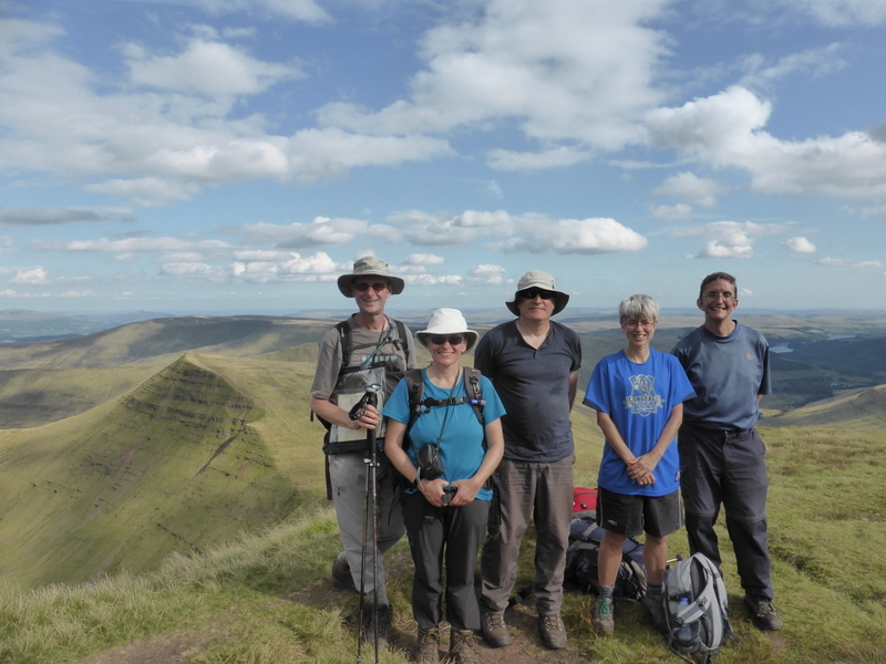 A Hill Too Far? When we first started planning our trip to the Brecon Beacons for August Bank Holiday weekend, Dave had this crazy idea of walking the whole thing in a day. As a circular walk it would have been very nearly a marathon, so we started to think about the possibility of a linear walk from one end to the other. It would still be quite a challenge, but then what are Bank Holidays for? The best weather was forecast for the Sunday, so, after an early breakfast, we drove out to Pencelli for the start of our walk. Somehow we had managed to persuade four others to join us (Mike, Dave J, Nigel, & Tae). The walk started with a steady climb, pausing at the first shoulder to bag Bryn, then onwards and upwards to the ridge proper. Here another quick out-and-back took us to the beehive cairn on the edge of Waun Rydd. This might have seemed like an unnecessary couple of miles to add, but the views over the Talybont valley were fantastic. Back on the main ridge our next target was the summit of Fan y Big. By this point we were starting to see a few more walkers, but curiously the summit was people-free. We eagerly approached the top only to find the reason it was empty was a plague of flies – well, flying ants. It made posing for the summit selfie something of a feat of endurance. Picking the flies from our teeth, it was at this point we got a call from the B team. The B team had taken one look at our planned route and, quite sensibly, decided to do something else. They had parked up at the head of Beacons reservoir and were doing just the central peaks of the range. Arguably just the best (& busiest!) bits. At the time of the phone call they were on the summit of Pen y Fan, so the race was on to see which team would bag Cribyn first. Team B had already done the biggest peak, but then Team A had come further. It would be a close run thing. The perfect blue skies and sunshine seemed to have brought everyone and their dog out onto the fells. The central peaks of the range were very busy. There were a lot of families, which was nice to see, a few fitness fanatics, a few wannabe fitness fanatics. I wouldn’t say we sped past them, but there was some quite alarming wheezing from at least one we over took. Cribyn is another very nice summit: a stiff climb to a little plateau with gorgeous views both ways along the ridge. As Tae and I reached the top we had the additional satisfaction of seeing Lily from the B Team still on her way up – we’d beaten them by about 100 yds. The flying ants had also made this top home, so we descended a short way to pleasant patch of sunny grass to wait for both teams and crack open some lunch. It is particularly satisfying when a plan like this comes together. After lunch the B Team were essentially heading down to the tea rooms, but we in the A Team still had about 5 miles and two peaks (including the biggest) to do. After some cheery goodbyes, we set off down to the pass and then up to the summit of Pen y Fan. I think there must be some sort of local challenge walk for this one, because it was by far the busiest. After out initial ascent at the start of the ridge, this was the stiffest bit of climbing. However this didn’t stop Tae breaking into a run at one point – some people have way too much energy! At the top the National Trust had placed a stone with the name of the mountain on top of the summit cairn, so naturally there was a long queue to have your photo taken next to it. We didn’t have time for this, so we pressed on to the next (and last) peak. Corn Du is another beautifully formed summit. The path up is a dog-leg from the main route up Pen y Fan, so most of the challenge walkers gave it a miss. That was their loss. Only a few metres lower than its neighbour, you get all the same views but less than half the crowds. The afternoon light was starting to pick out all the layers and folds in the landscape, and it was beautiful. However, we still had our descent to complete, preferably before dinner! This last bit of the walk was always going to be the hardest. Sustained descent will bring out all those achy knee and foot pains you’d been able to ignore on the more glamorous ascent. The path contoured along the top of the valley head before descending to a miner’s access track, which was a little more forgiving on our tired legs. Back at the bunkhouse, with our boots off and a mug of tea in our hands, we could reflect on a great walk (14 miles and approx 4000ft ascent). Nigel likened it to surviving an SAS training march. Ali |