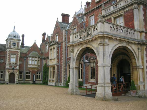 After our hard cycle ride on the Sunday of our tour of Norfolk, one decided to visit Sandringham. Unfortunately HM, Philip and the corgis were not at home having decamped to Balmoral for the summer. It's is a charming little country house, too small or course for living in full time but perfect for those times when one wants to escape London and Windsor for some simple country living. There were seven of us and we were allowed in the house even though a bit scruffy. To our surprise our rucksacks were not searched - but as none of us had beards (George not being with us), perhaps we were deemed low risk. Sanrdringham is not a palace or a state building, but the Queen's own private house and the rooms we saw were more like those in a home than a palace. The living room was full of family pics, its just the family's a bit more well known!