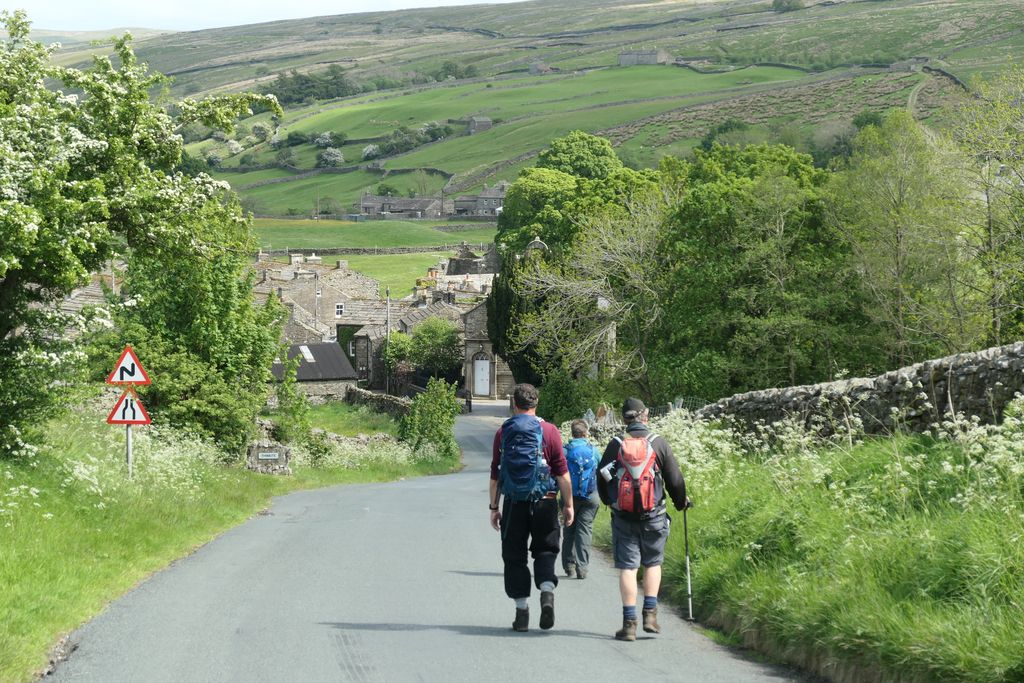 Our first day was bathed in sunshine and a beautiful introduction to the flower-filled hay meadows that would be a feature of the whole trip. This was the gentlest of the four days, so a perfect warm-up, including the perfect cool-down at the Green Dragon Inn in Hardraw, before staggering the last few miles to Hawes. This day included a key landmark as we sat enjoying cake in Askrigg opposite the building that served as Skeldale House surgery in the original TV series.