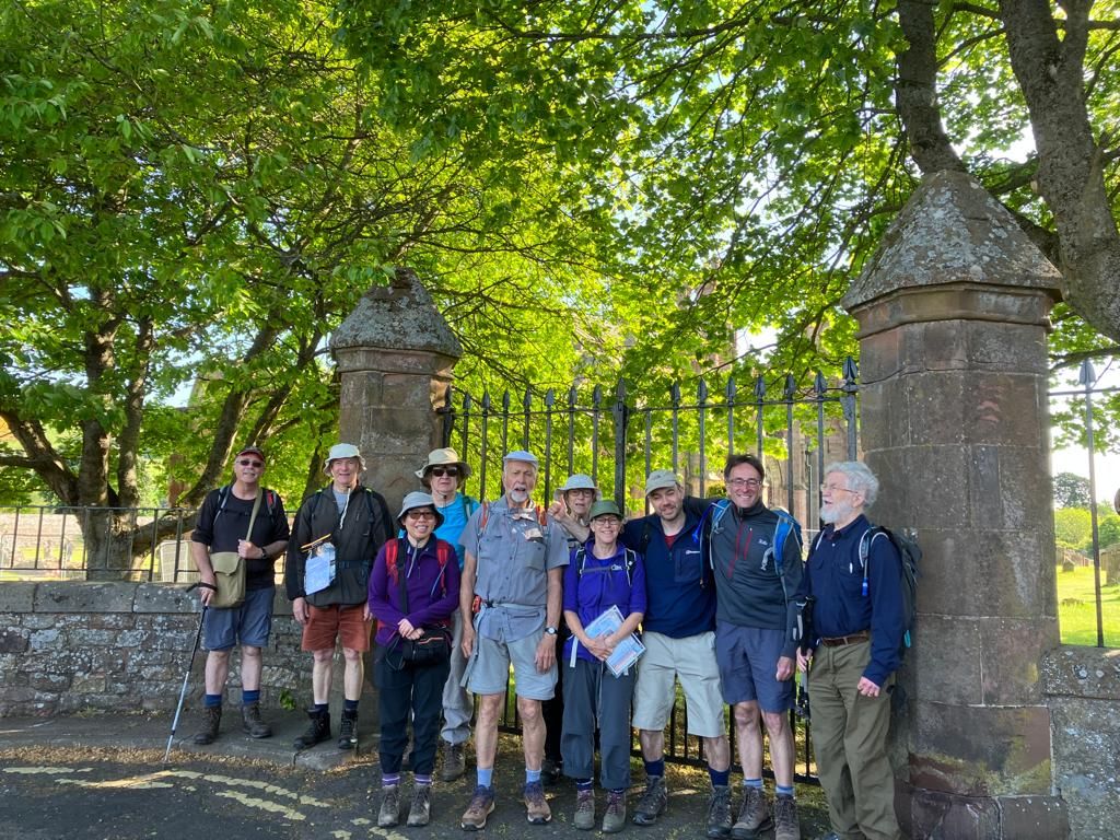 On the first day (15 mile walk) we were in Doug’s car. A SatNav error made us late and time was running out when we finally arrived at Harestanes for a brisk walk to Ancrum. We didn’t have to wait long for the bus! It was a lovely walk, and Dere Street wasn’t as dull as I’d expected. Lunch on a beach by the Tweed while a piper played across the water at Dryburgh Abbey was beautiful. John F did it all, to my delight.